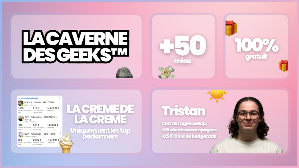 Tu fais de l'ads ? Alors arrête de perdre ton temps avec ta veille créative : retrouve GRATUITEMENT 50 créas top performers testées et validées.
